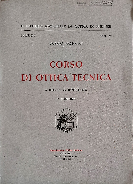 Details cm.18x24,5, pp.380, 188 figure bn. nel testo e 190 figure bn.in 36 tavole ft, brossura. R.Istituto Nazionale di Ottica di Firenze, Serie III Vol.V. Al frontespizio la data riportata è del 1941. Prima edizione. Intonso.