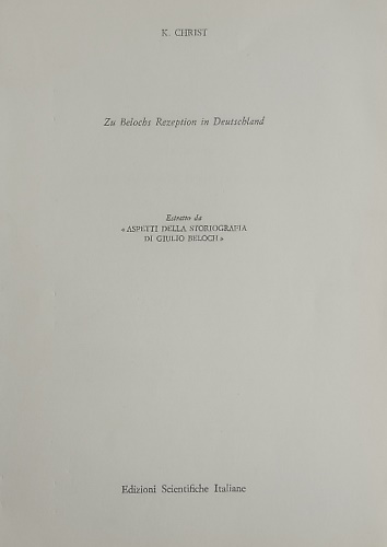Zu Belochs Rezeption in Deutschland. Estratto da "Aspetti della storiografia di Giulio Beloch".