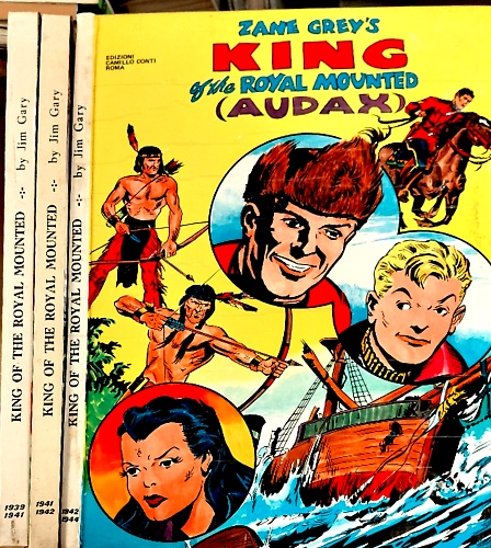 King of the royal mounted (Audax). Copertina Ermanno Iaia.--Strisce giornaliere dal 6 marzo 1939 al 4 gennaio 1941.--Strisce giornaliere dal 6 gennaio 1941 al 21 Novembre 1942.--Strisce giornaliere dal 23 Novembre 19412 al 17 Giungo 1944.