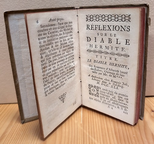 AbstractQuesto pamphlet è attribuito a M. Delile, primo medico del principe-vescovo di Liegi. Vi si fa la critica del libro Le Diable ermite, ou Aventures d'Astaroth banni des enfers. Ouvrage de fantaisie » di Pierre Lambert de Saumery, publié en 1741, in cui quest’ultimo copriva di ridicolo quelli che erano stati i suoi benefattori a Liegi. Delile spiega nella prefazione perché il suo libro era apparso prima di quello di de Saumery, che rispose a questo pamphlet con un altro libello dal titolo Le Censeur impartial ou réflexions morales, critiques et comiques sur le diable hermite et le diable confondu. Sia Le Diable Hermite: Ou Avantures D’Astaroth Banni Des Enfers che Le diable confondu sono storie fantastiche incentrate sul personaggio di Astaroth, un diavolo bandito dall’inferno che si ritrova nel mondo dei mortali e deve affrontare un ambiente a lui sconosciuto cercando di ritrovare un mezzo per tornare indietro. I vari effetti comico-sarcastici scaturiscono dagli effetti non voluti delle operazioni magiche di Astaroth che hanno curiose conseguenze. I due libri sono infarciti di intrighi e di complotti a cui partecipano streghe, demoni e angeli. Saumery nel 1739 lascia Liegi e trova ospitalità presso l’abbazia di Saint Hubert, dove l’abate Célestin de Jongh gli apre le porte con spirito compassionevole, anche se lo spirito inquieto da avventuriero, che caratterizzava la personalità di de Saumery, fa sì che in poco tempo egli abbandoni anche questo rifugio per tornare definitivamente in Olanda. Nonostante questo, e nonostante che de Saumery abbia apertamente affermato di essersi pentito di aver abbandonato il protestantesimo, l’abate di Saint-Hubert continuò a proteggerlo, mantenendogli anche la pensione già erogata. Saumery risponde, ponendo fine alla querelle, con Le censeur impartial, pubblicato nel 1741. Soprattutto il libro di de Saumery è considerato un classico della letteratura fantastica per la sua scrittura avvincente e per la sua continua creatività fantastica. Meno fortuna critica ha avuto invece il libro qui posto in vendita, probabilmente perché chi lo scrisse non era un letterato di professione e non divenne mai un personaggio eminente nel mondo delle lettere: il suo libro fu un caso isolato all’interno della sua vita. Ciò nonostante esso ripercorre, nella contro-parodia, gli elementi costitutivi del racconto del Saumery, e, se lo si legge, vi si ritrova lo stesso gusto e la stessa inventiva.