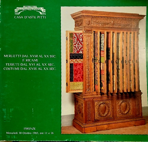 Merletti dal XVIII al XX sec. e ricami , tessuti dal XVI al XX sec. Costumi dal XVIII al XX sec di provenienze private.