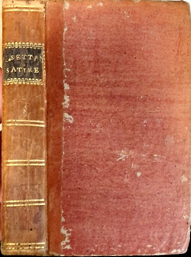 1788, cm.9,5x16, p.XXV, [1], 353, [3]. legatura in tutta pergamena rigida, tassello in pelle al dorso. I tre tagli sono colorati di rosso. Satire originariamente composte in latino.