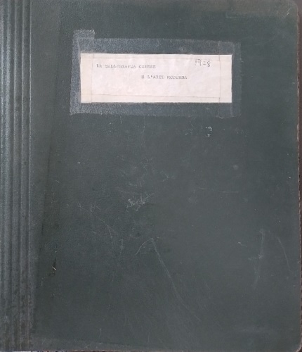 La calligrafia cinese e l'arte moderna Tesina originale dattiloscritta databile fine anni '70 del Novecento , come si deduce dalla bibliografia e dall'estetica della cartella. Molto interessante,costituita da 61 pagine Prevalentemente di tavole bn.estrapolate da altre pubblicazioni come esempi di scrittura cinese e alcune pagine di intropduzione e commento. Si legge dal frontespizio oltre ad un indice, forse il nome del compilatore, Au Siu Kam, e del professore di fiferimento, Ferro.