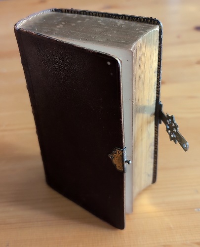 Dettagli cm.9x15, pp.1036, Rilegatura in pelle marrone, con titoli e fregi al dorso ed ai piatti anteriori e posteriori in oro. Alle sguardie riquadri con dentelle in oro e motivo floreale. 5 nervi al dorso. Fermaglio in ottone a chiusura dei tagli longitudinali. Nuova edizione accuratamente riveduta ed aumentata.