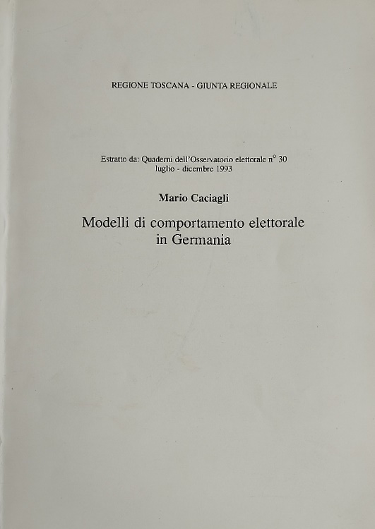 Modelli di comportamento elettorale in Germania. Modelli di comportamento elettorale nella Repubblica Federale Tedesca (1949-1987) e le prime elezioni della Germania unita (1990).