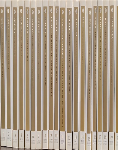 Raccolta Grandi Civiltà. 20 volumi completa. VOL.1. Roma. L'arte nel centro del potere dalle origini al II secolo D.C. VOL.2. Roma. La fine dell'arte antica dal II secolo D.C. alla fine dell'impero. VOL.3. Grecia. L'età arcaica dal VII al V secolo A.C. VOL.4. Grecia. L'età classica dal V al III secolo A.C. VOL.5. Grecia. L'età ellenistica dal III al I secolo A.C. VOL.6. Egitto. I faraoni al tempo delle piramidi dalla preistoria al XVI secolo A.C. VOL.7. Egitto. L'impero dei conquistatori dal XVI all' XI secolo A.C. VOL.8. Egitto. Il crepuscolo del mondo egizio dall' XI secolo A.C. al IV secolo D.C. VOL.9. Celti. La prima civiltà dell' Europa occidentale. VOL.10. Fenici. Il Mediterraneo prima di Roma. VOL.11. Etruschi e italici. L'arte in Italia prima del dominio di Roma. VOL.12. Maya. La grande civiltà del centro America. VOL.13. Aztechi. Dalle origini al XVI secolo. VOL.14. Inca. La civiltà delle Ande. VOL.15. Sumeri. L'alba della civiltà del vicino oriente. VOL.16. Assiri. I conquistatori della Mesopotamia. VOL.17. Ittiti. L'antica civiltà dell' Anatolia. Vol 18, Sciti. Vol 19, Arte Egea, Vol 20. Preistoria.