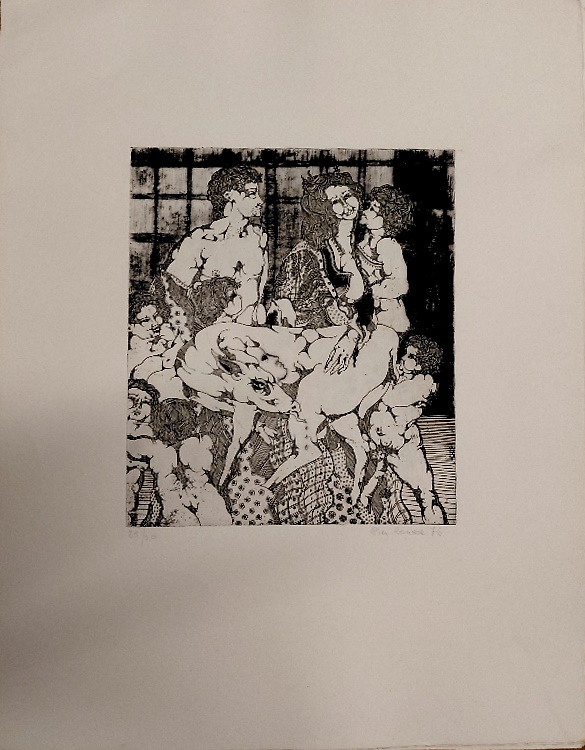 1976, cm.19,5x25, su foglio di cm.50x35, Edizione in 30 esemplari. Nostro 14/30 Firmato a matita dall'autore.