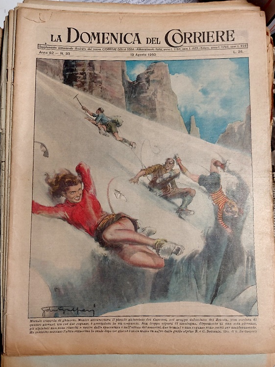 La Domenica del Corriere. Lotto costituito da 129 numeri vari: --1940. n.3,--1941. n.29, 31, 32, n.37-52.--1942. n.1-51 (Annata Completa)--1943, n.1-45. 49, 50.--1948. n.52--1950. n.33, 35, 36, 43, 44, 45, 46, 47, 50, --1951. n.5.
