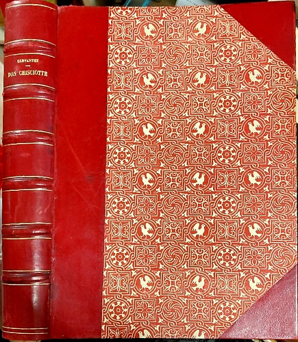 legatura editoriale in mezza pelle, piatti in seta decorata, titoli e fregi in oro al piatto anteriore e dorso.