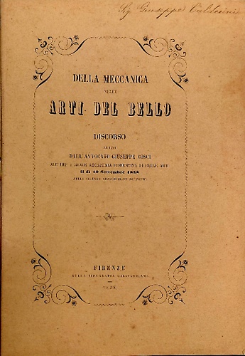 Della meccanica nelle arti del bello discorso letto dall'avvocato Giuseppe Cosci all'imp. e reale Accademia fiorentina di belle arti il dì 19 settembre 1858 nella solenne distribuzione de' premi.