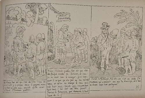 Dettagli cm.28,5x18, formato albo. 88 carte numerate solamente nel recto. Edizione stampata su carta molto pesante , quasi cartoncino. rilegatura in mezza pelle. Disegnato da Rodolphe Topffer (1799-1846)