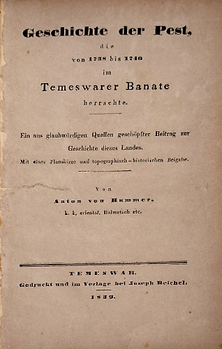 Geschichte der Pest die von 1738 bis 1740 im temeswarer Banate herrschte. Mit einer Planskizze und topographisch-historischen Beigabe.