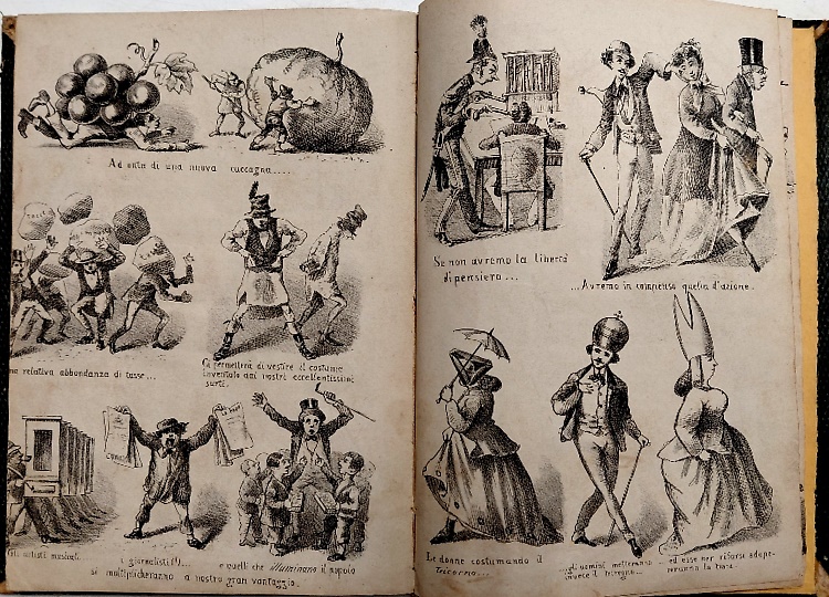Dettagli cm.15,5x22, pp.168, con tavole e figure bn. satiriche. rilegatura in mezza tela.