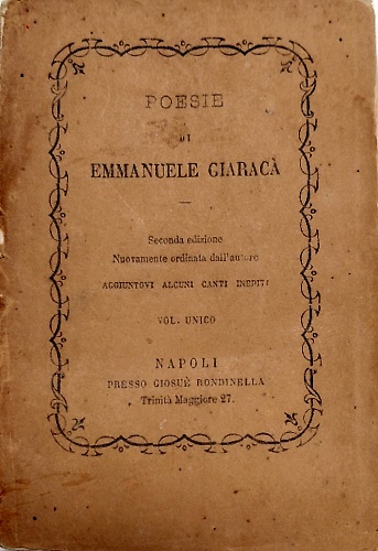 CuratoreSeconda edizione, nuovamente ordinata dall' autore aggiuntovi alcuni canti inediti. Volume unico.
