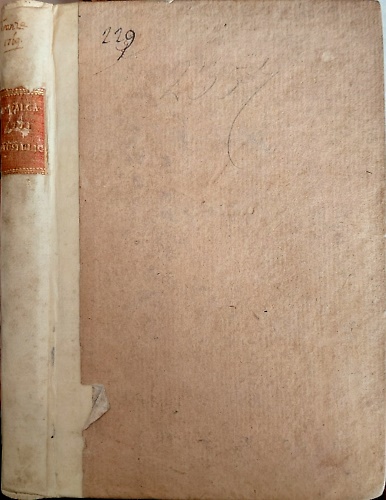1769, cm.15x22, pp.VIII,173,(3), impresa xilogr. dello stampatore al frontespizio, legatura con copertina muta in cartoncino, titoli manoscritti al dorso. Esemplare marginoso e in barbe.
