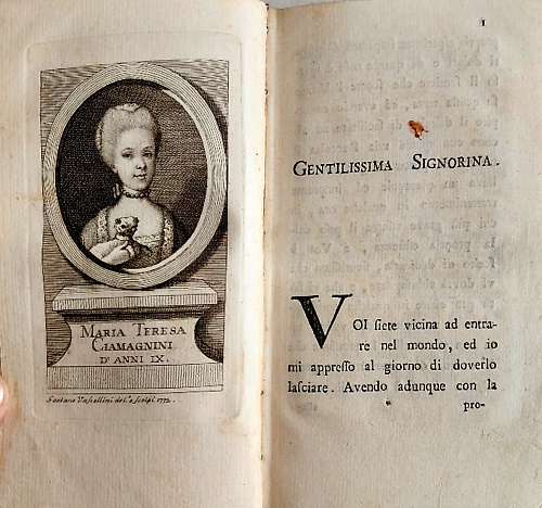 pp.240,XIX,148, Frontespizio inciso su rame con titolo entro un drappo con un paesaggio sullo sfondo.