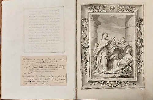 AbstractIn antiporta una tavola allegorica in cornice decorata incisa su rame da Francesco Zucchisu disegno di Bernard Picard, bella vignetta al frontespizio. Grande stemma di Giulio Se Viva, magistrato mantovano. Una tavola con prospetto del sepolcro di Sigismondo Malatesta cui è dedicata l'opera. Due testatine in rame. Notizie della vita dell'autore scritte dal conte Giammaria Mazzuchelli.Il volume presenta delle precise e dettagliate annotazioni a margine con la stessa grafia di un biglietto da visita allegato del Prof. Dott. Pietro Manchisi di Sansepolcro che scrive:--restituisco il volume gentilmente prestatomi e ringrazio vivamente la S.V.E. Le varianti , come mi sono permesso di notare a p.l. furon tratte, senza dubbio, dal Trivulziano 985. Corrispondono le notizie segnate a piedi della stessa pagina le varianti che io già avevo raccolto dal ....