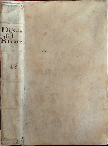 Iniziali e fregi xilografici. Legatura coeva in piena pergamena rigida con tassello in pelle al dorso. I tre tagli sono colorati di rosso.