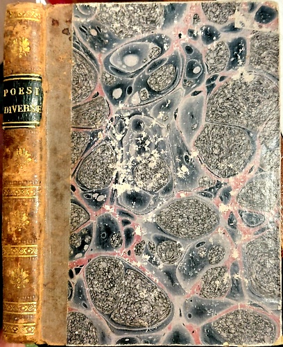 Dettagli cm.10x14,5, pp.166 [i.e.176], frontespizio in cornice rilegatura in mezza pelle con tassello al dorso, piatti fasciati in carta decorata. I tagli sonodipinti forse con motivi floreali. Esemplare fresco e marginoso. Estremamente Raro.
