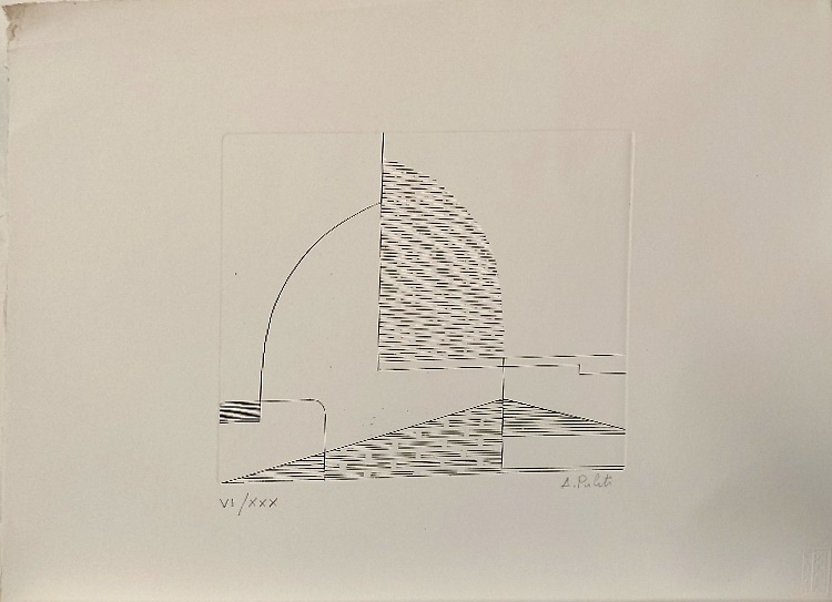Dettagli cm.16x24,5, su foglio da litografia 35x50, interno a un fascicolo su carta Fabriano con breve biografia dell'artista. Esemplare VI/XXX. Estratto dalla Cartella "Artisti Toscani incisioni" del Consiglio Regionale della Toscana.