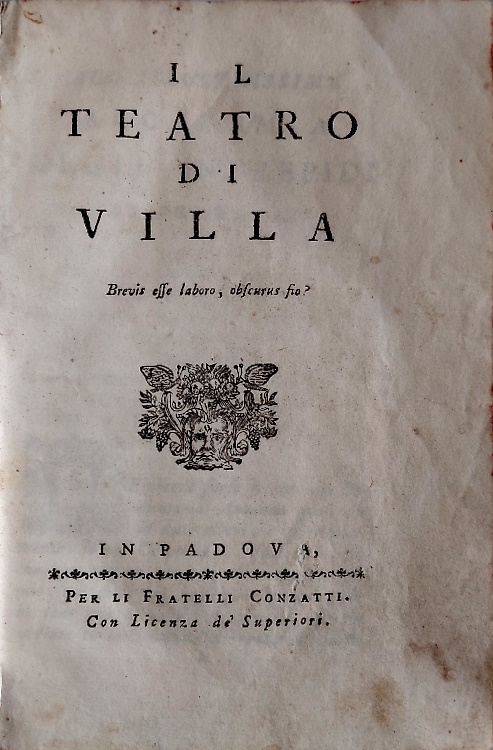 Il teatro di villa. Il volume raccoglie le seguenti 10 opere rilegate insieme.--Isacco al Monte sacra rappresentazione per la villa.--La cabala commedia. Per la villa.--Il geloso di se stesso commedia per la villa.--I letterati commedia per la villa.--Il Fakir del Mogol comedia per la villa.--Le donne circasse . Commedia per la villa.--Il filosofo e il pazzo. Tragedia per la villa.--Soffì Mirza. Tragedia per la villa.--La vecchia d' un giorno. Commedia per la villa.--Il bel selvaggio. Commedia per la villa.
