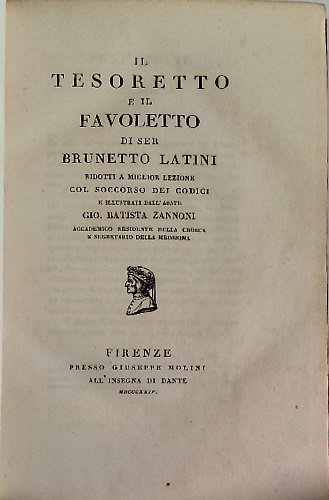 Il Tesoretto e il Favoletto. Ridotti a miglior lezione col soccorso dei codici e illustrati dall'abate Gio. Batista Zannoni.