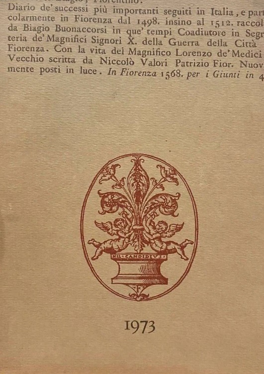 Diario de' successi più importanti seguiti in Italia,e particolarmente in Fiorenza dal 1498 insino al 1512 raccolto da Biagio Buonaccorsi in que' tempi Coadiutore in Segreteria de' Magnifici Signori Dieci della guerra della città di Fiorenza. Con la vita del Magnifico Lorenzo de' Medici il Vecchio scritta da Niccolò Valori Patrizio Fior. Nuovamente posti in luce in Fiorenza. Appresso i Giunti,1568.